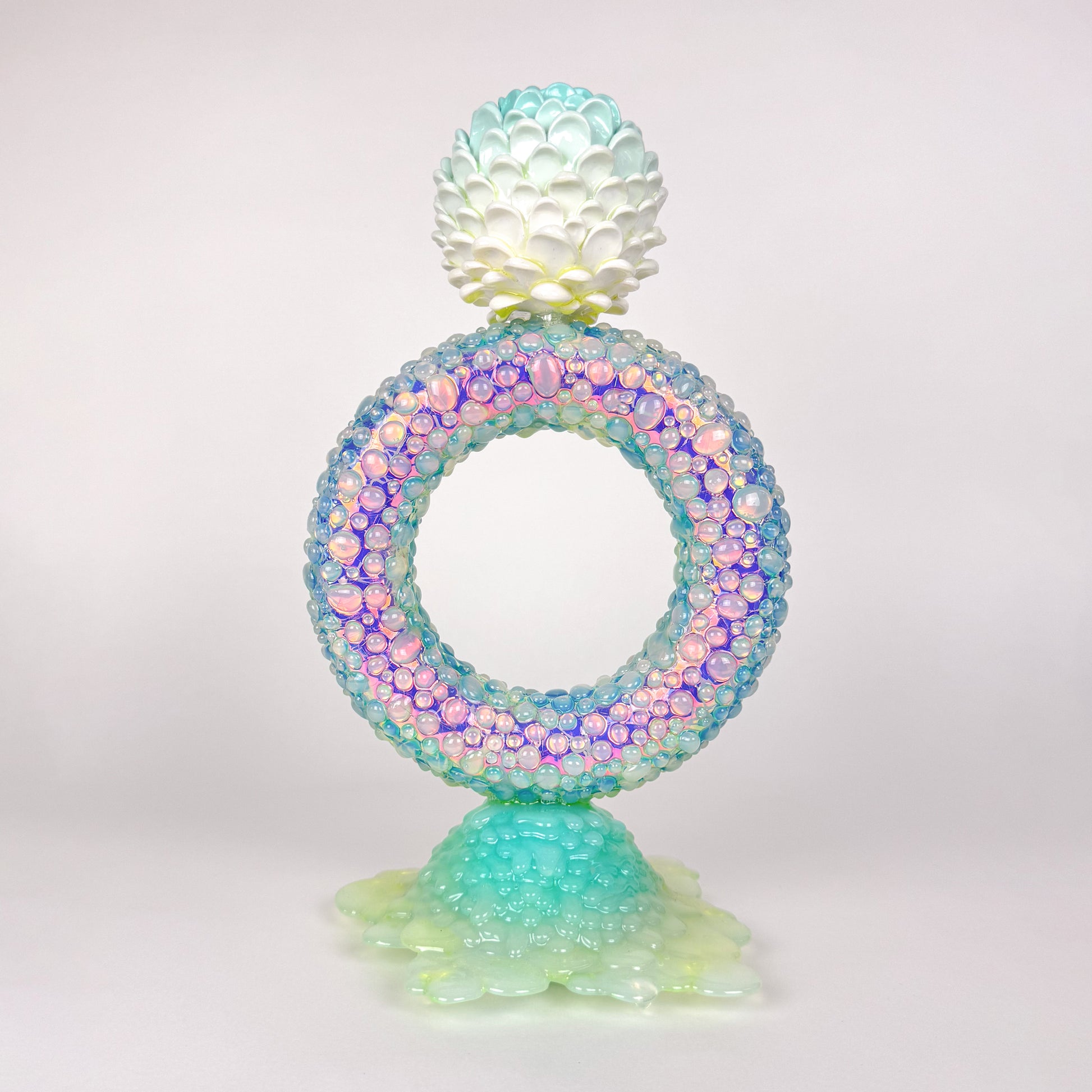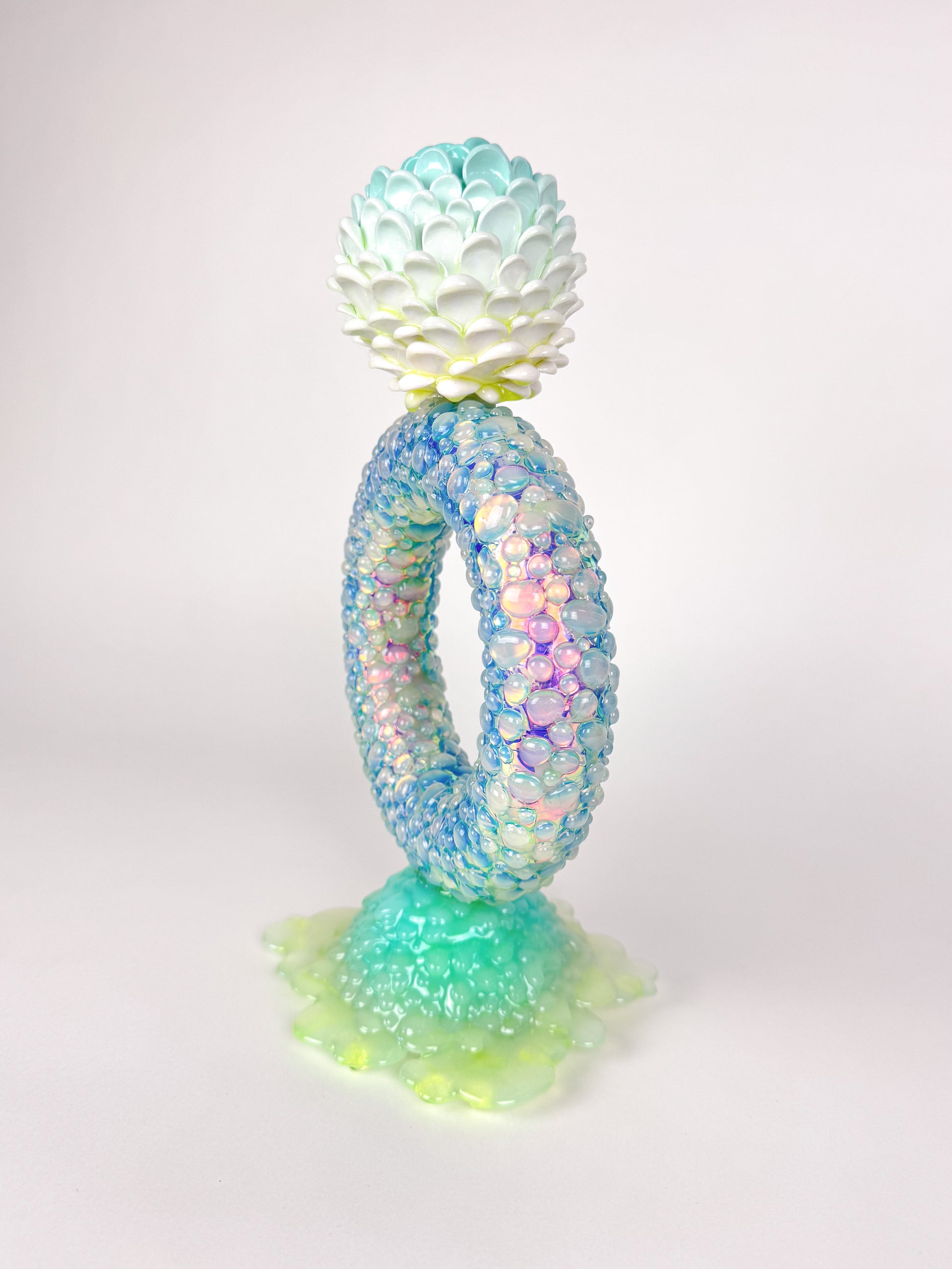 Chroma Gate is a small-scale sculptural form that draws on the architecture of cells, growth patterns, and organic systems. Crafted from synthetic materials and rendered in intentionally unnatural colours, the piece plays on the tension between biological memory and artificial construction. The result is an otherworldly object that feels both familiar and alien, an artifact of nature reimagined.