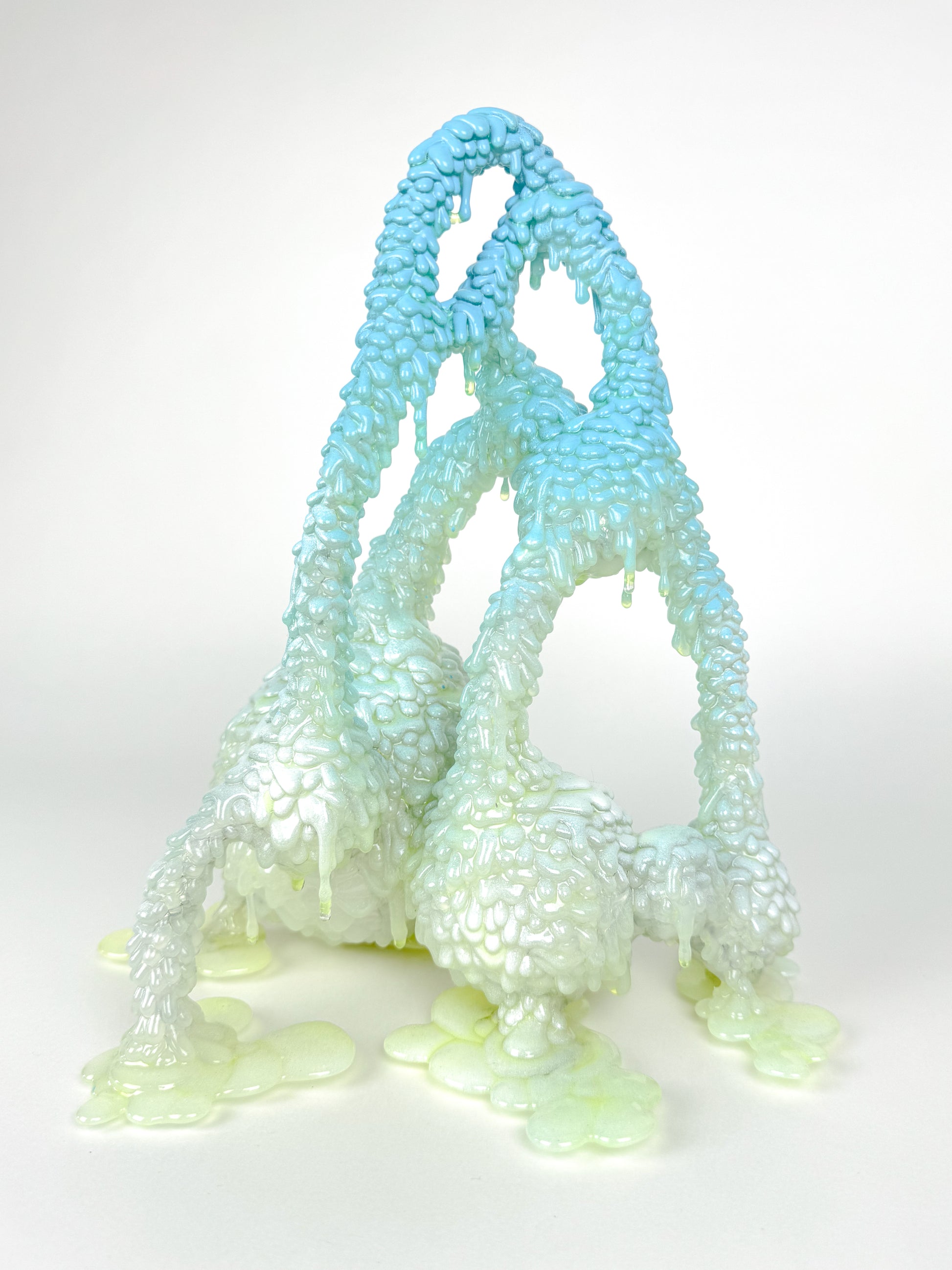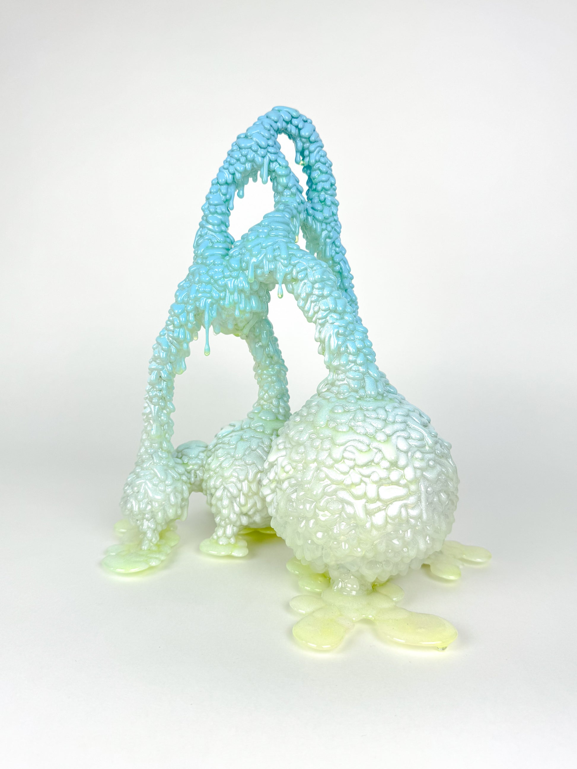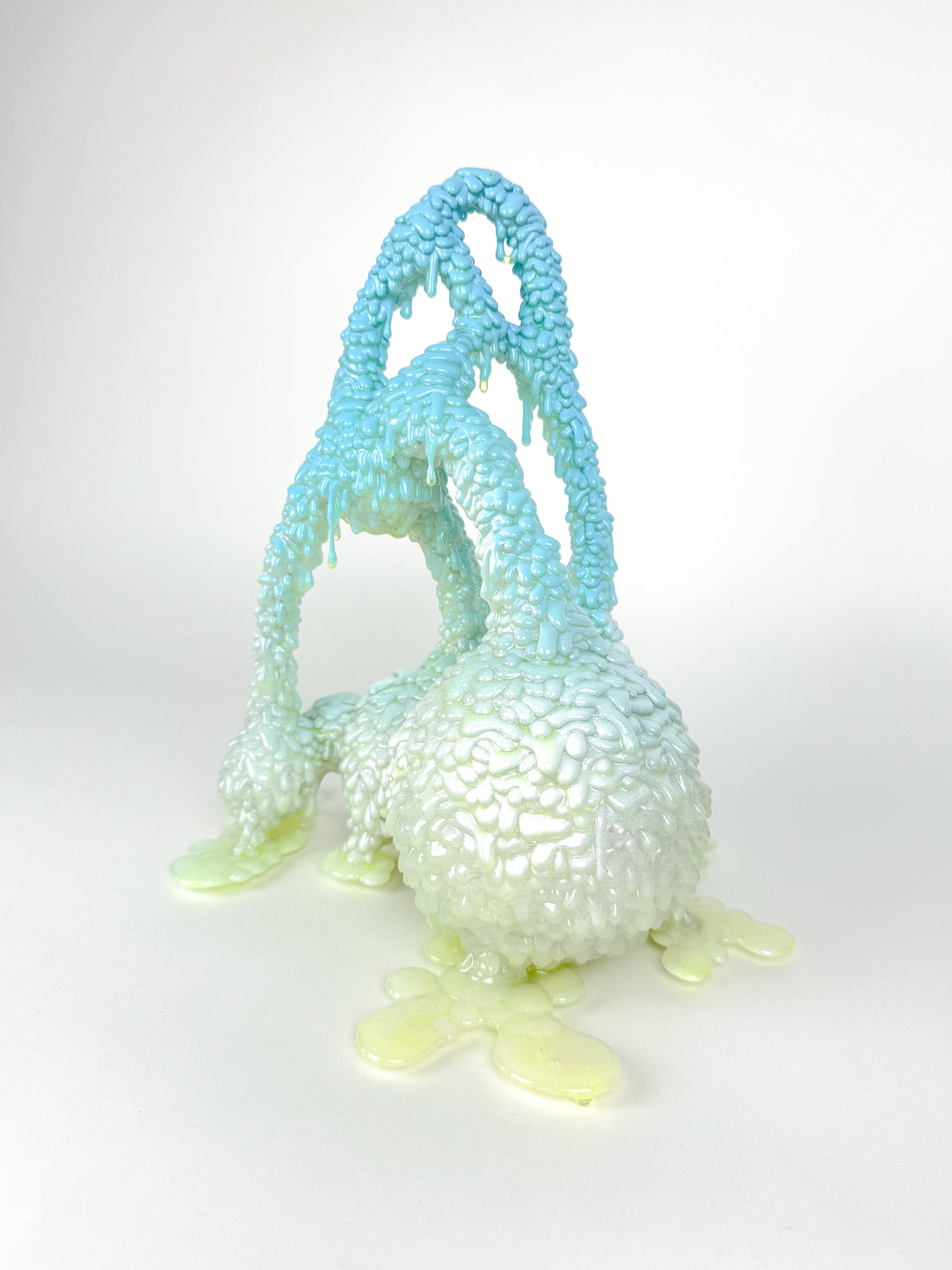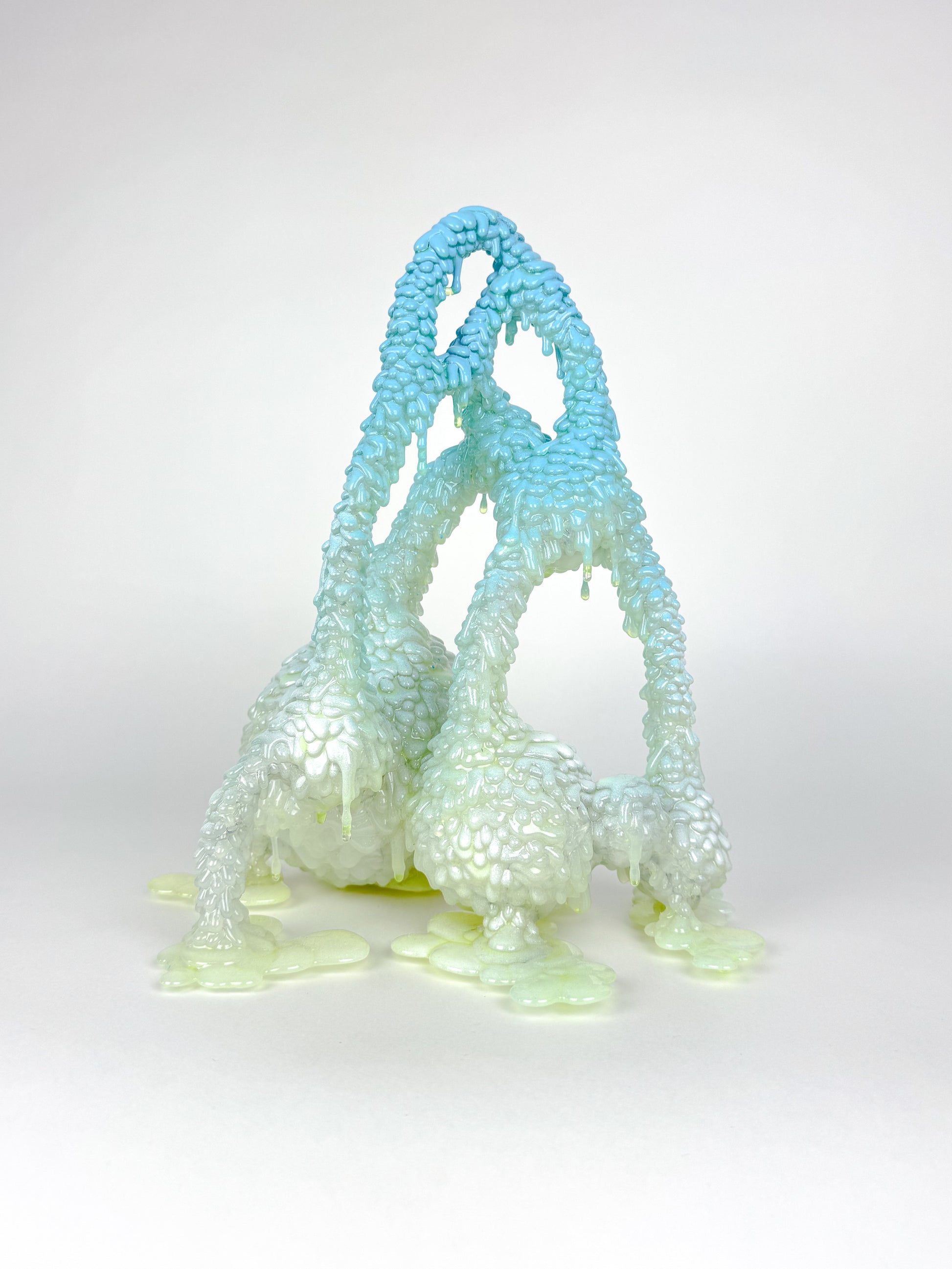 Melting Reliquary is a small-scale sculptural form that draws on the architecture of cells, growth patterns, and organic systems. Crafted from synthetic materials and rendered in intentionally unnatural colours, the piece plays on the tension between biological memory and artificial construction. The result is an otherworldly object that feels both familiar and alien, an artifact of nature reimagined.